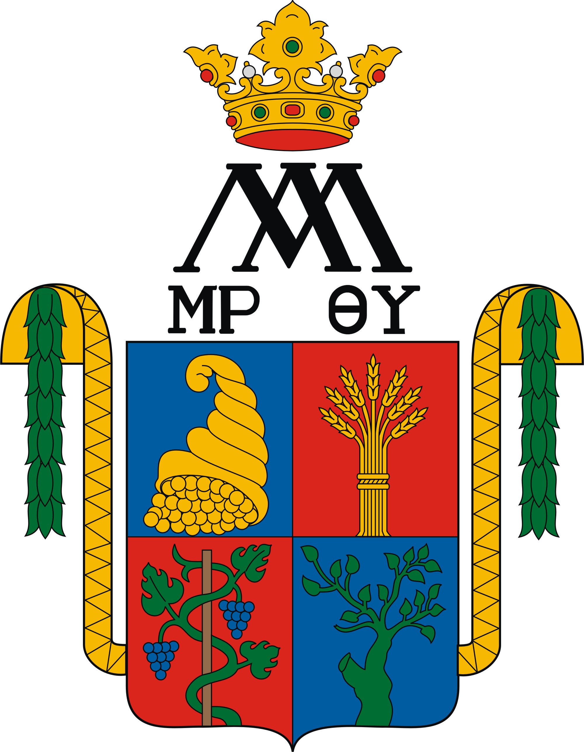Fent arany színű királyi korona, alatta egy nagy fekete nyomtatott 'M' és 'H' betű összekapcsolva. (Piarista Kegyes Tanítórend jele) Alatta nagy 'MP QY' jel.