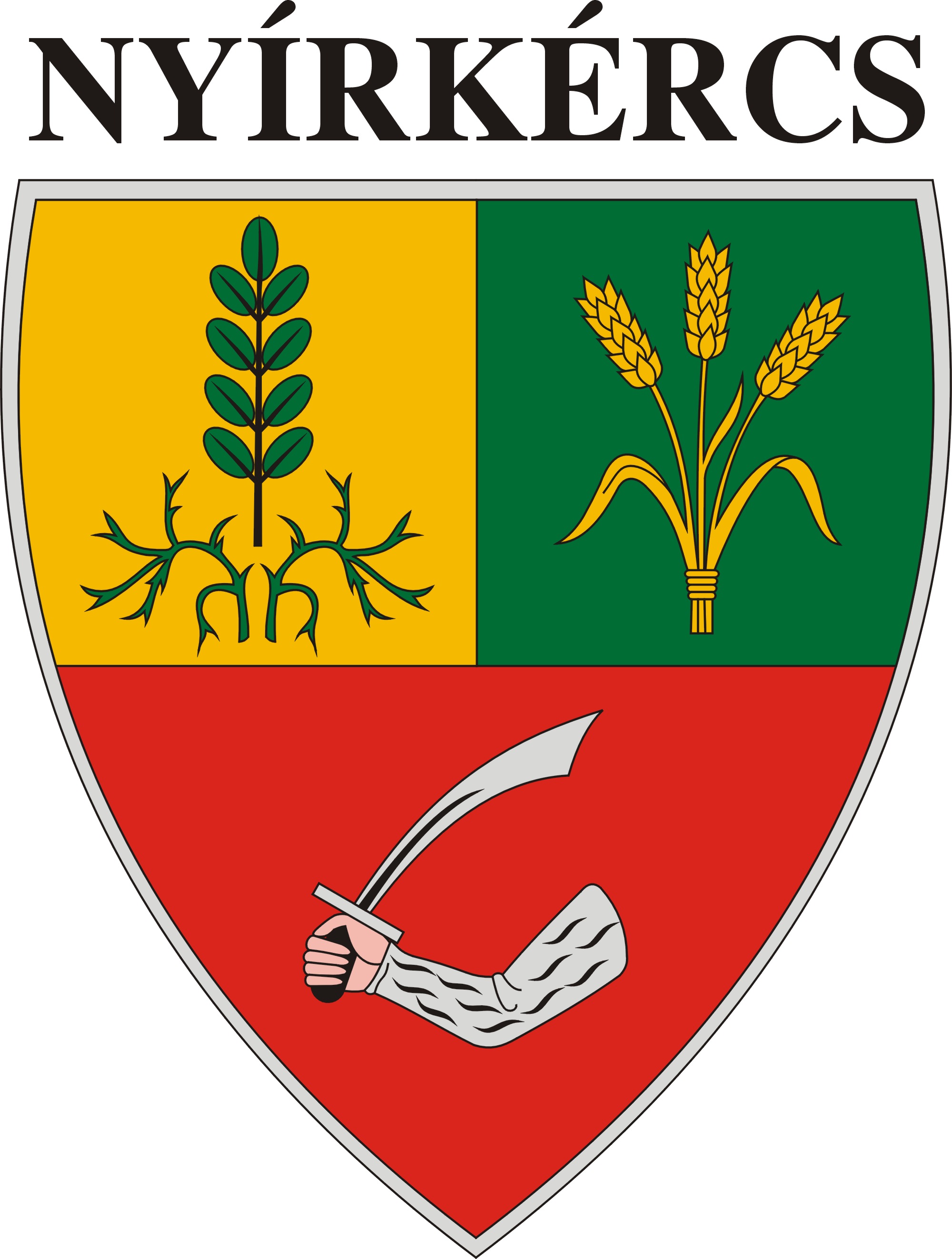 A címerpajzs felett fekete színű felirat olvasható: NYÍRKÉRCS.