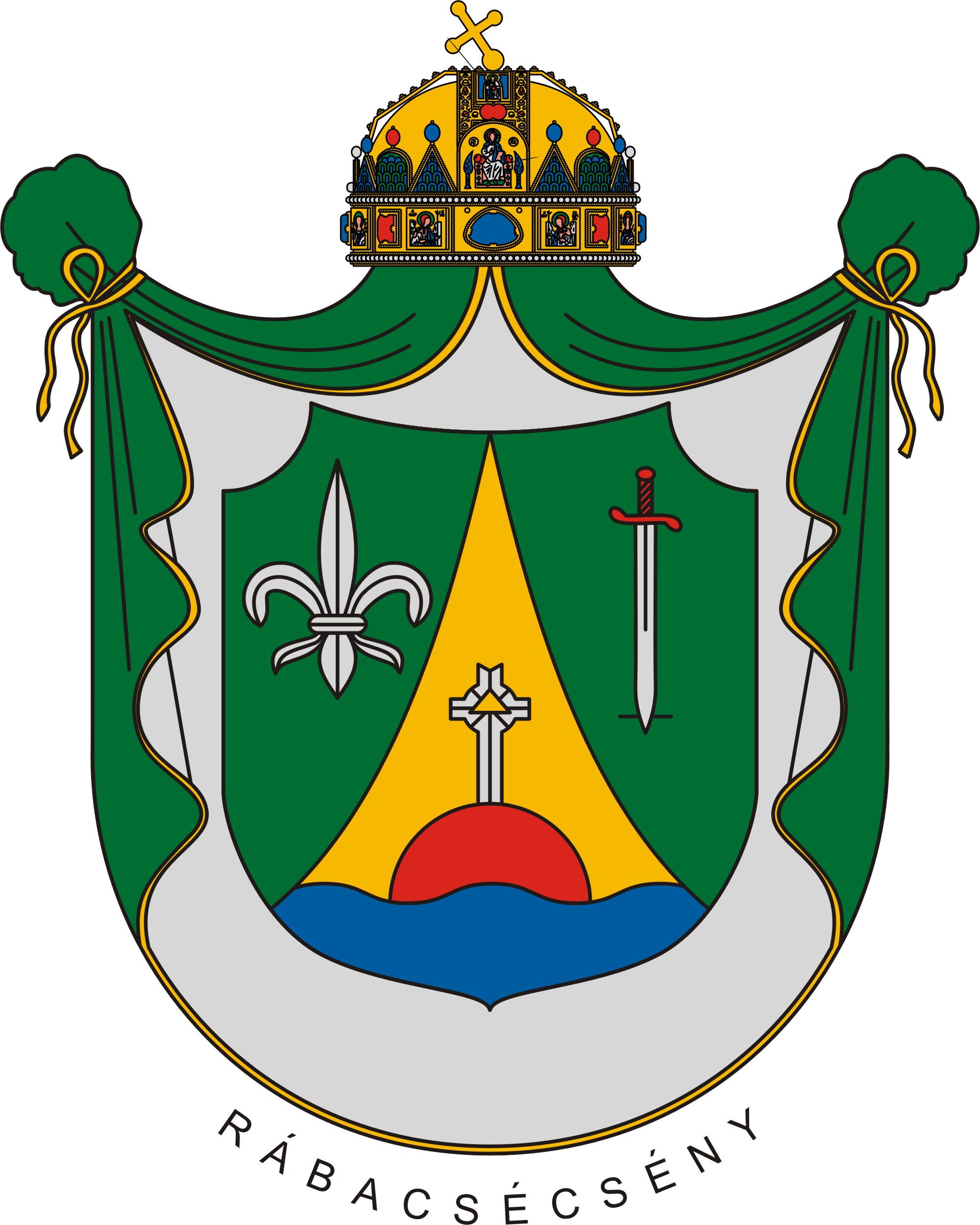 A címerköpeny vagy palást zöld bársony fehér selyembéléssel, fölötte a Szent Koronával, mely a nemzeti hovatartozást jelképezi.